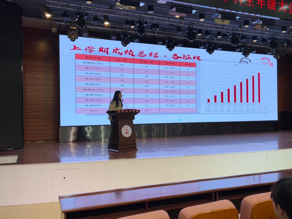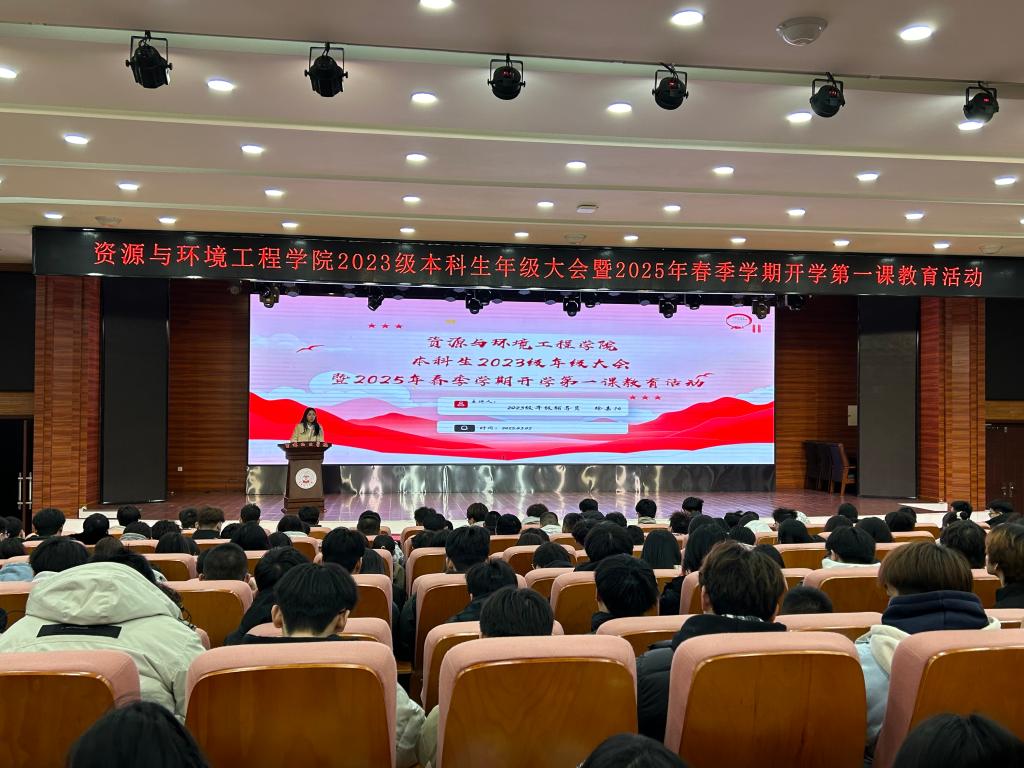为进一步明确新学期学习目标,推动年级工作顺利开展,让同学们以更加饱满的热情和坚定的信念迎接新学期的挑战与成长,资源与环境工程学院于2025年3月2日18:30在第二教学楼报告厅组织召开“资源与环境工程学院2023级本科生年级大会暨2025年春季学期开学第一课教育活动”。