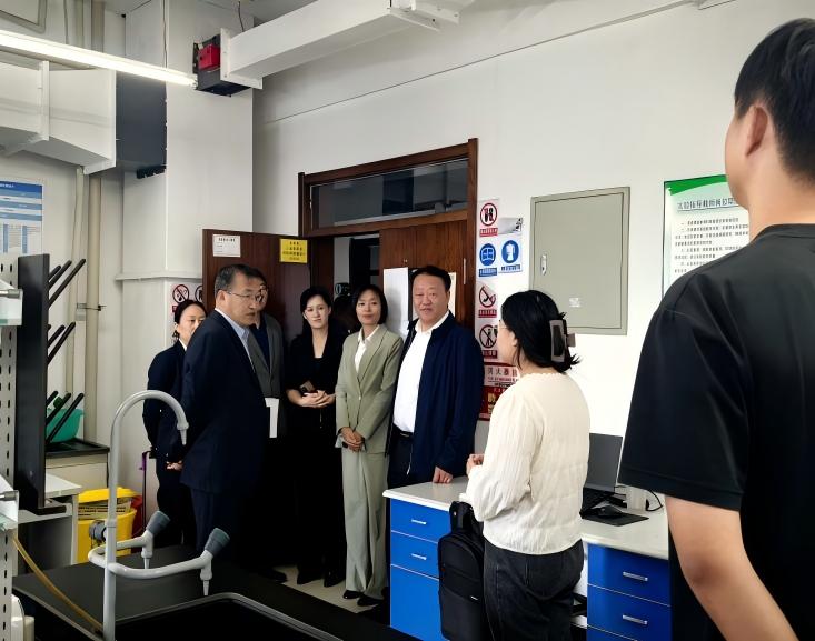 实验室调研现场,张明耀书记在学院党委书记倪龙、院长于凤丽、党委副书记高寒、副院长徐亮、副院长邹继颖的陪同下,检查了实验室环境及设备维护与调试情况,询问了实验室安全管理细则,还与实验室内师生亲切交流,详细了解教学科研工作推进现状及面临的急难愁盼问题。