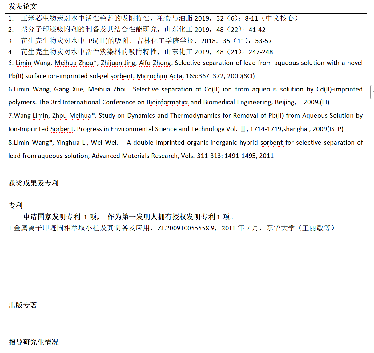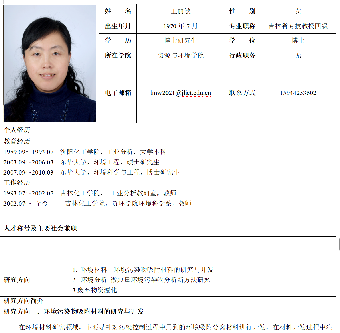 吉林化工大学硕士生导师个人情况简介-王丽敏