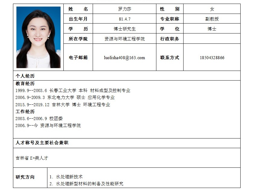 吉林化工大学硕士生导师个人情况简介-罗力莎