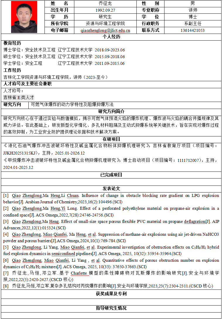 吉林化工大学硕士生导师个人情况简介-乔征龙